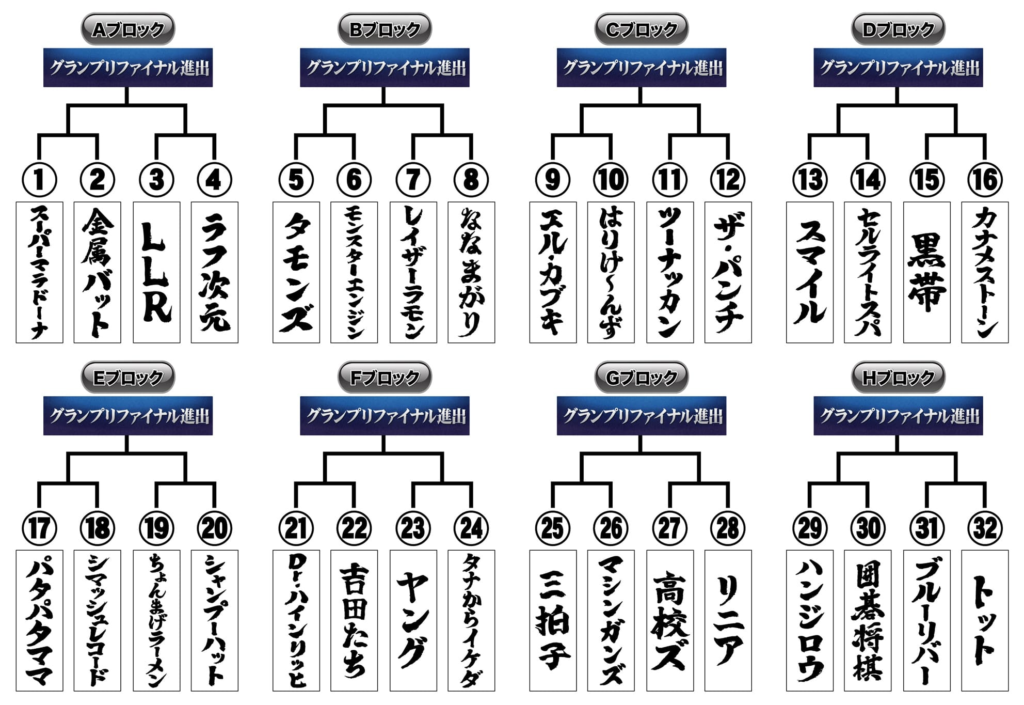 - 組み合わせ(A〜Hブロック・全16試合)